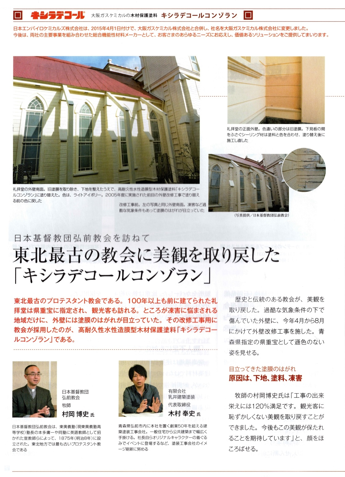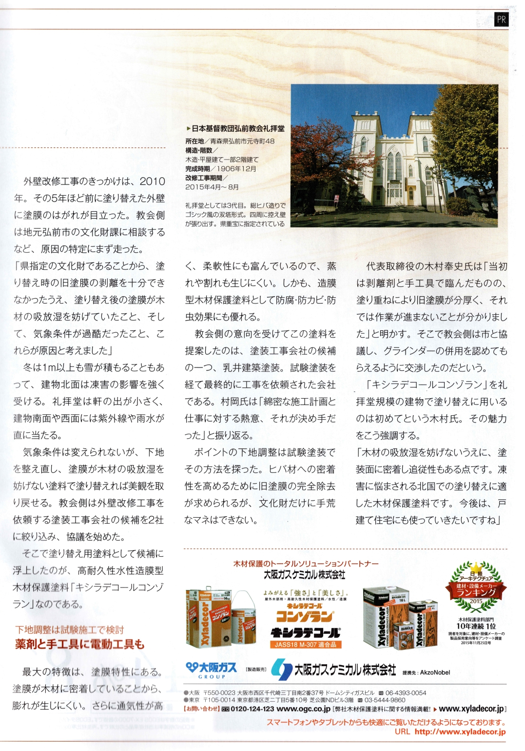 弊社が承りました、弘前教会の塗装工事が日経系雑誌の記事に取り上げられました。